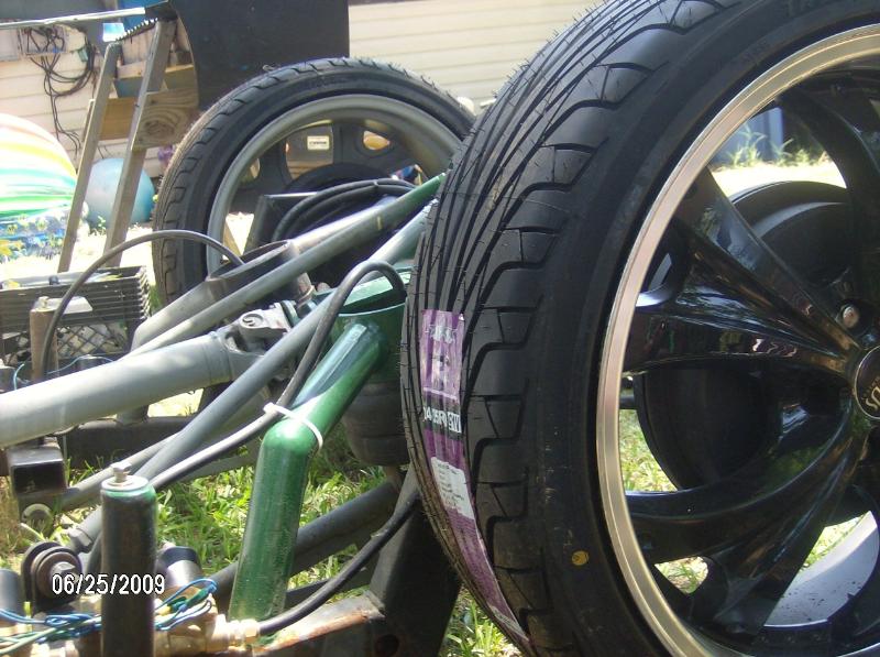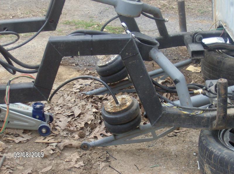 have 4 slam bags 8 1/2 valves big ass blojacks comp.2-3 gal. tanks.the hole back of frame was mad from 2x3 box tubbing, by Brit Coxs.4-link,full cell mad by dens fab.