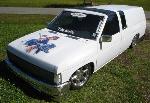 Bodydropped 2.75 past the pinch to the rockers, shaved, targa top, suicide gate, 4X4 fenders, phantom billet, four corner angel frenched plate in gate,toy 4X bumper
