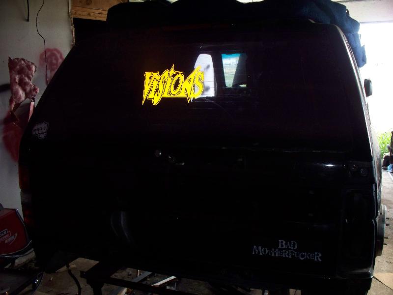 97 hood black monochomatic removed spare tire carrier,emblems,sticker,and badges :)