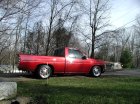 chrome handles, painted wipers,painted fiberglass flush mount tonneau,fiberglass cowl hood,roll pan, no more chrome bumper, euro tailights, 96 nissan front bumper and grille, bed has custom enlosure design and sports a red tweed decore. Orignal paint except for items listed