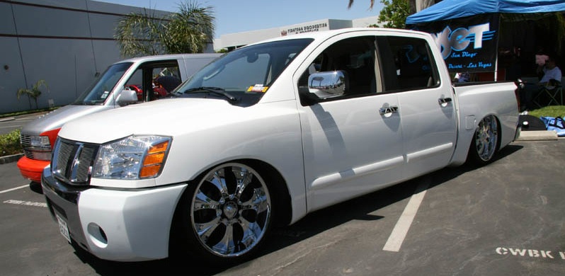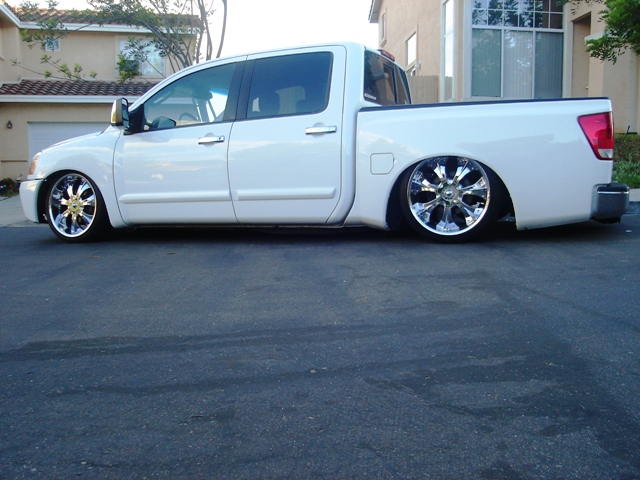 BAGGED. STANDARD BAGS MOUNTS IN FRONT. PARALLEL 4 LINK WITH PANHARD BAR IN REAR. BAGS OVER AXLE. PLUMBED WITH 1/2" PARKER AIRLINE AND PUSHLOC FITTINGS. (4) 1/2" GC LIFT VALVES, (2) 1/2" ASCO DUMP VALVES (REAR), (2) 3/8" SMC DUMP VALVES (FRONT). (2) VIAIR 480C COMPRESSORS. (1) 5 GALLON TANK AND A HUGE NITROGEN BOTTLE! A 9 ROCKER AVS SWITCHBOX. PROPS TO SCD FABRICATIONS IN SAN MARCOS, CA