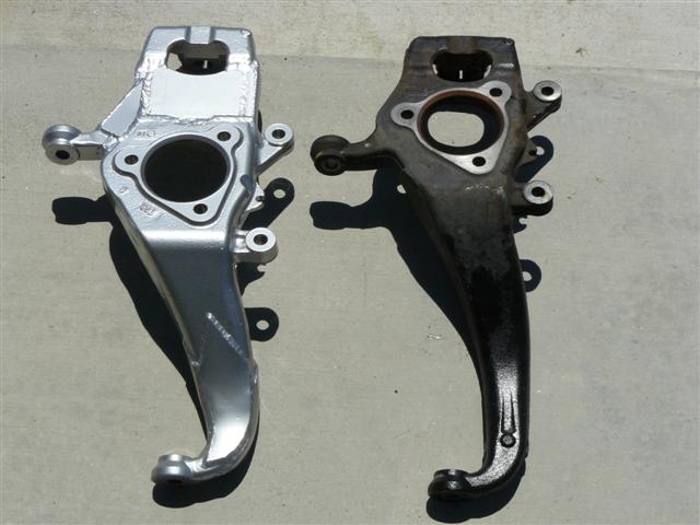 Cut springs in front--and Custom built knuckles built by Max of Bio Kustomz.. sitting on bumpstops, camber adjustment maxxed.
