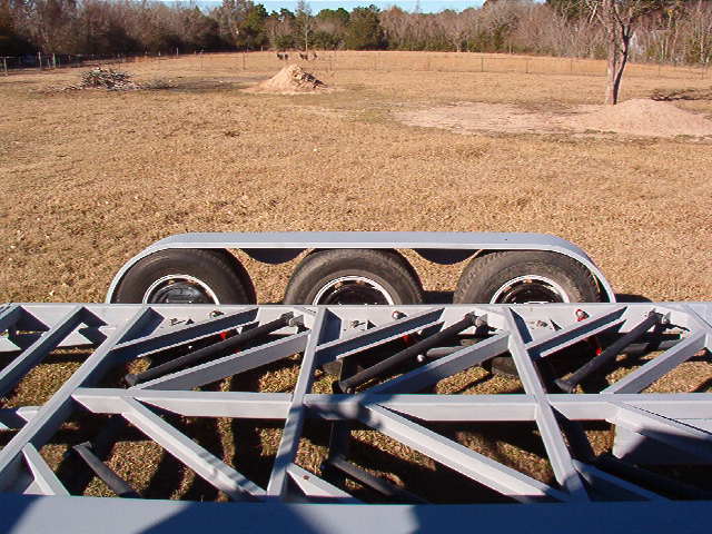 40 foot deck gooseneck trailer that lays flat on the ground with a hinged dove tail so no ramps will be needed