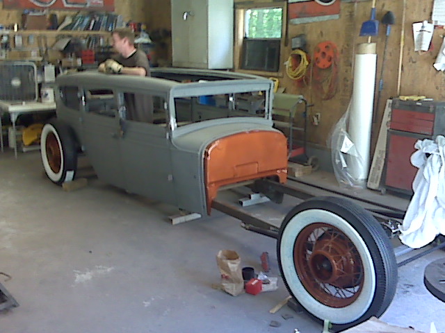 1932 Ford 17" spokes w/ Tall bias ply Firestone White Wall tires.