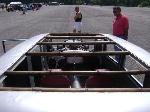raw metal, original dash relocated and left raw, bamboo roof folding bass boat seats. amber tinted windows