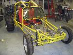 1641cc VW motor, swing axle transmission, Bugpack shifter, bugpack pcv breather, dual weber idf 40 carbs, electric fuel pump, remote oil filter and cooler, high output coil, hydraulic clutch