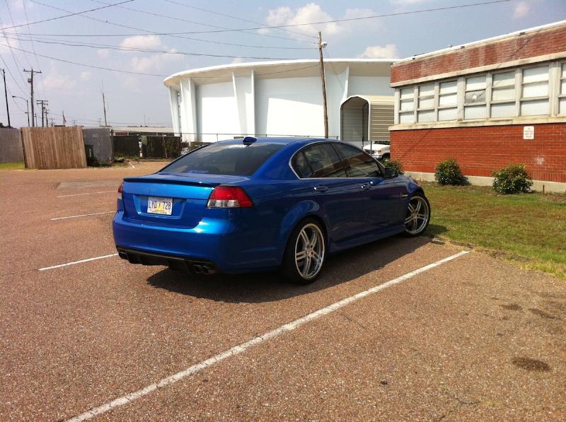 Clear blinker lights, smoked rear reflectors, tint, painted calipers, 6000k HIDs, G8 GXP rear diffuser, Sharkfin antenna, plasti dipped grills, LED fogs, red v6 G8-style LED tails
