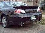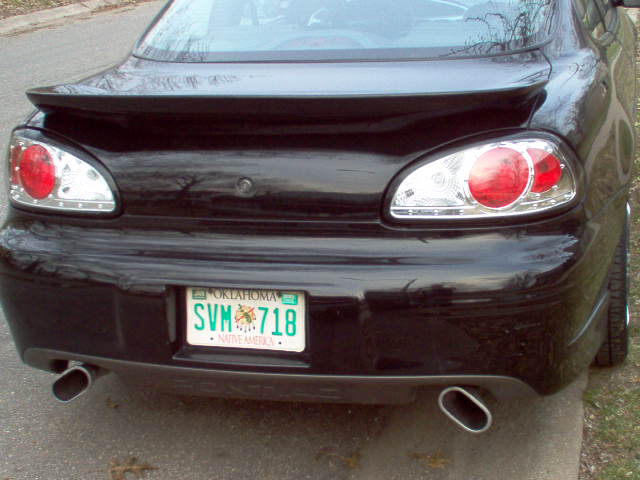Black, Vent shade black headlight covers, Euro Tail lights. SLP spoiler, 5% window tint all around, JDM black Clear corner lights.