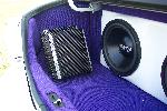 white face gauges, custom purple tweed accented interior, white painted accents, polished aluminum and carbon fiber pedals, custom audio video system,custom made switch panel in center console(for neons,amp,etc), Chrome fire extinguisher in drivers side rear window