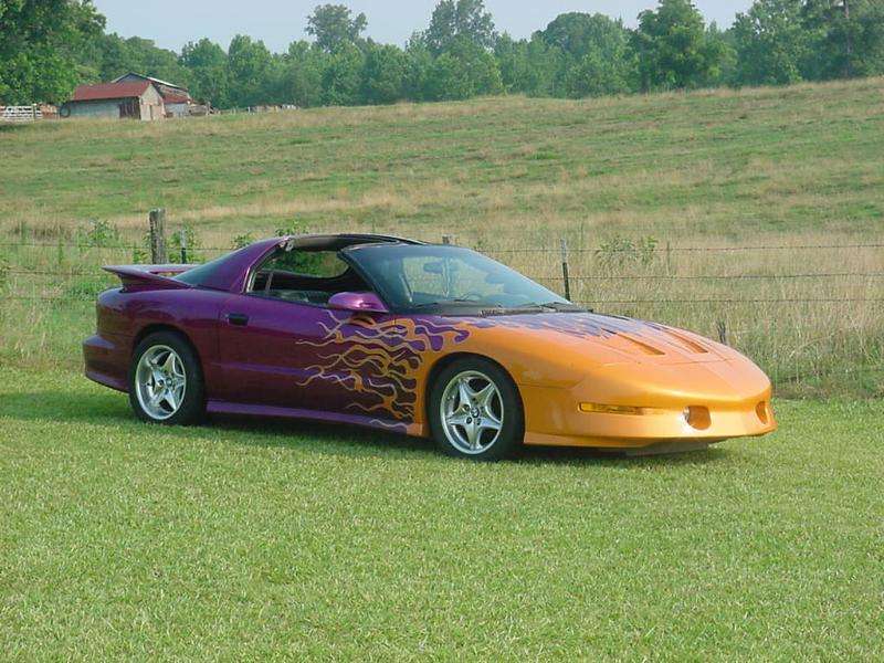 HOK paint- (House Of Kolor) Kandy Purple w/ Sunset tangerine Pearl Orange flames pinstriped in Orion Silver, Custom made Clear tail lights