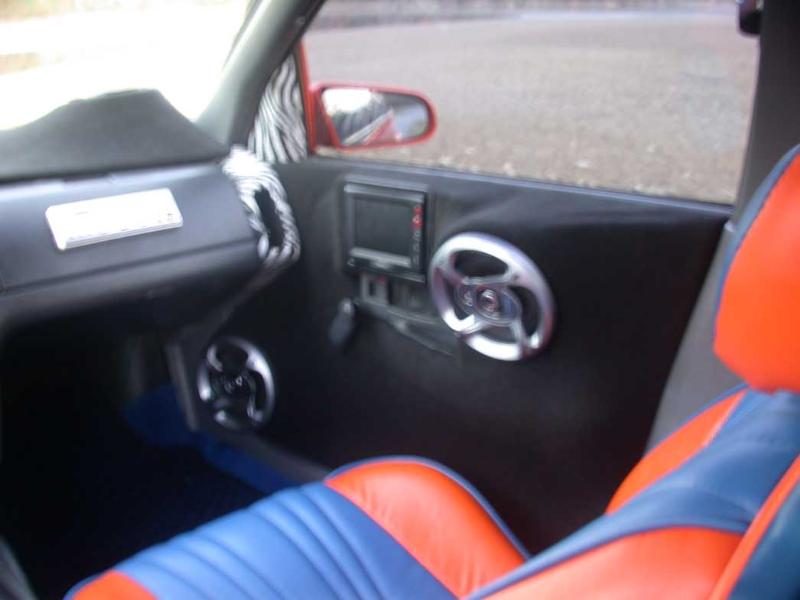 orange an blue vinle seats blue carpet, fiberglassed doorpanels