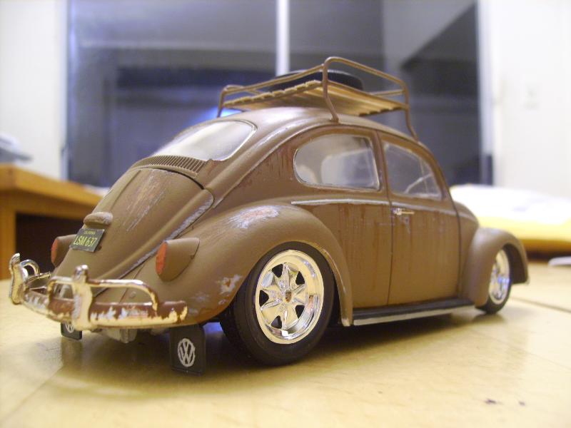 Full fake patina///Nothing shaved//Painted primer gray with a flat brown topcoat//sanded through in high areas//ALL hand painted rust in the usual places//complety hand scratch built roof rack out of 8 gauge metal bailing wire///with real balsa wood slats//also patina'ed