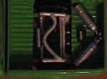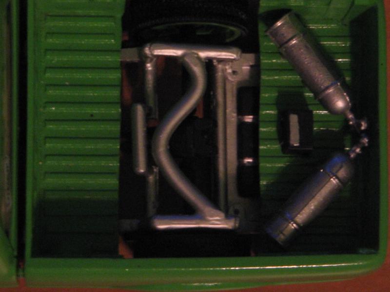 hot rod green..shaved taillights,doors,CUSTOM "BONDO" rollpan, 3rd brake light,CUSTOM front bumper,gas door ..uhh thats all i think