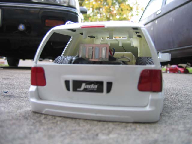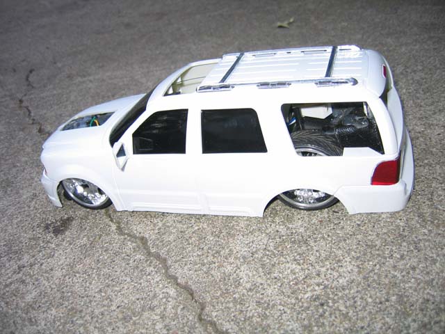 Paint I Red/Black 2 tone with white stars on the transition. Put some Flint in the back bumper so when Im dragin the body it sparks.