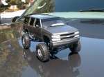Shaved roof, door handles, side moldings, bumpers, and running boards. Painted charcoal gray metallic. Double limo window tint all around.