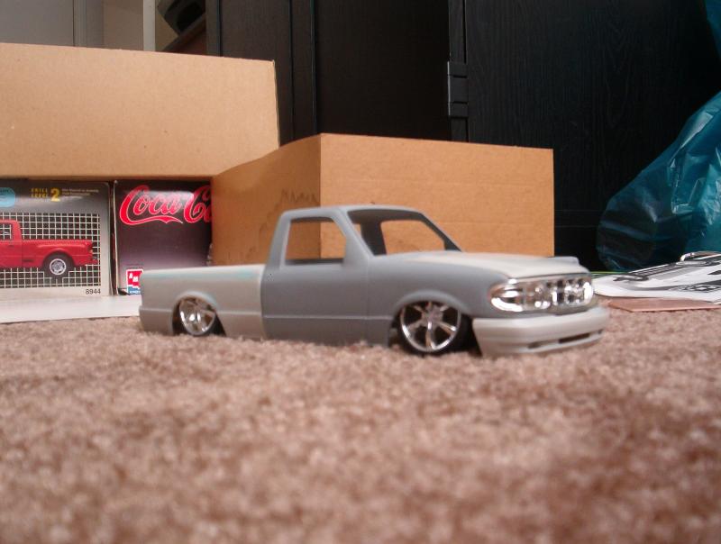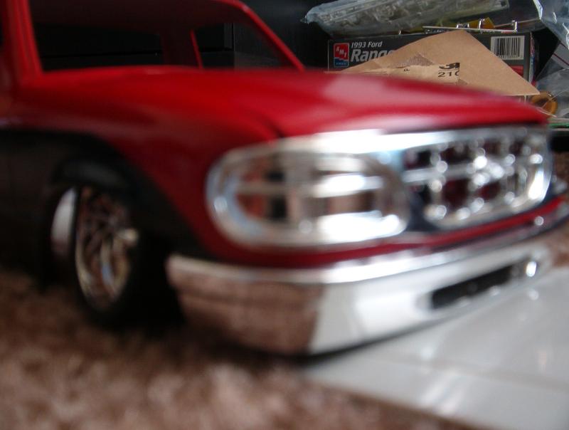 96 explorer front clip, shaved door handles, bodyline, gas door. moulded skin and shaved tails. chrome explorer bumper, explorer hood, painted in a "black widow" theme, but will be changing to red and silver two tone