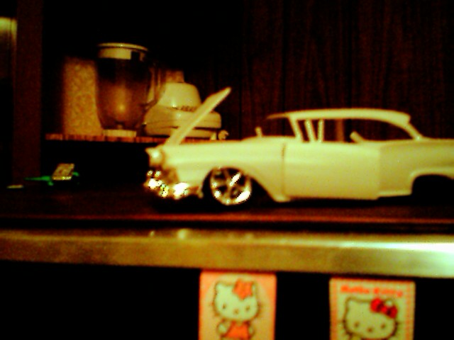 shaved all chrome on the body....choptop frenched head and tailights (custom tails)opening doors...(hood opens stock that way) rollpan..(yes a rollpan on a car) gunna be dark metalflake purple...and maybe some neongreen flames