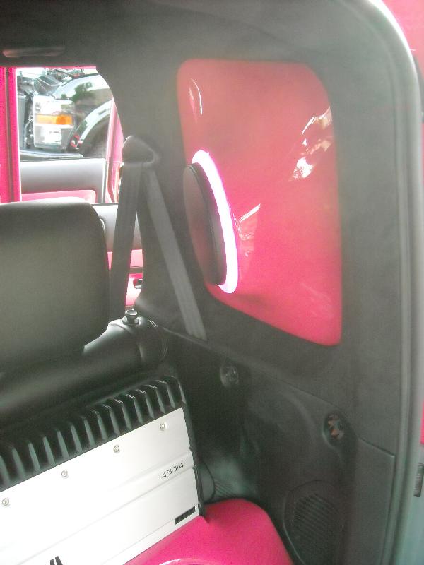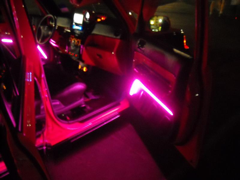 Painted lower dash, Custom upper dash with JL Audio 3 way setup molded in, Full custom door panels with pained inserts,Leather wrapped seats, Everything windows down is ultraleather, everything windows up is suede.