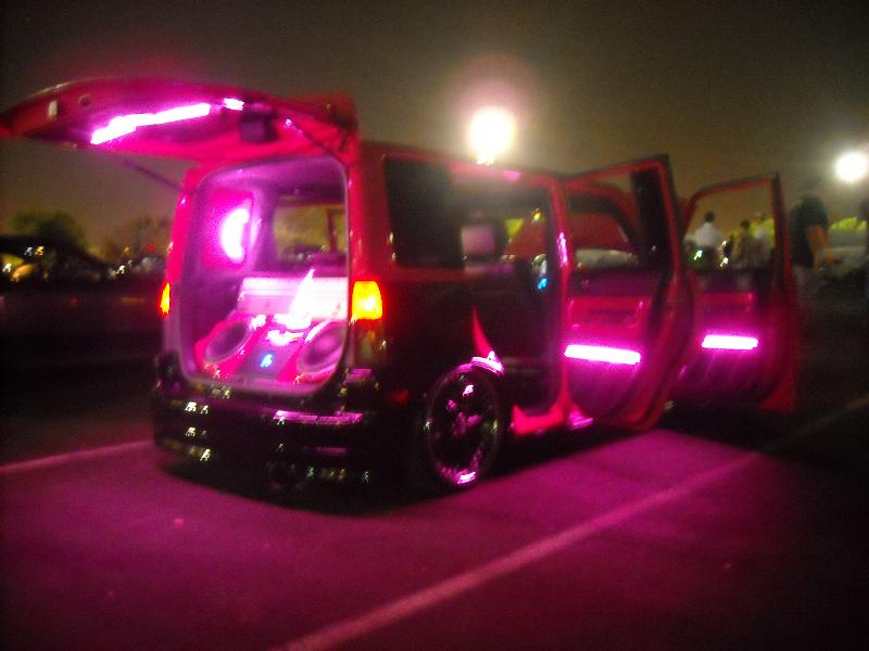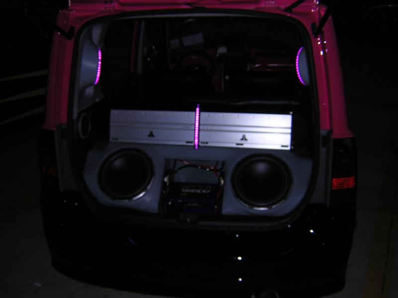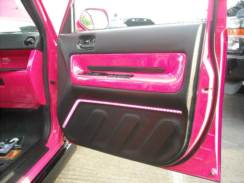 2 tone hot pink/ black ppg paint, bb emblem, cleared corners, painted/ smoked taillights, oem spoiler, Inalfa glass roof