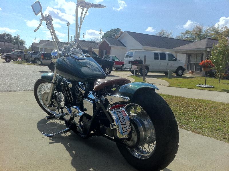 Custom green paint, Custom fenders, ape hangers with custom grips, removed reflectors and turn signals, custom leather springer seat, Chrome billet tag holder/ led brake light. + more