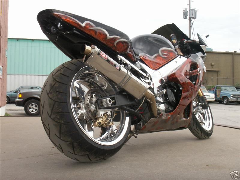 240 WIDE TIRE KIT.... CUSTOM SWINGARM BY TRAC DYNAMICS WITH TWIN LOOPS, PAIR VALVE MOD, ST MACHINE CUSTOM LEVERS, ST MACHINE CUSTOME HEEL GUARDS , EXOTIC CYCLES BLOCK OFFS , DIAMOND BILLET KICKSTAND , GALFER WAVE ROTOR , PROTECK GAS CAP , AFTERMARKET ENDURANCE UPPER FAIRING, POLISHED FRAME AND SUBFRAME , ORANGE NEON LIGHTS , STEEL BRAIDED LINES , EURO UNDERTAIL WITH GSXR LOGO LIGHTS, FLUSH MOUNT SIGS, VORTEX ENGINE COVER , RK GXW RACE CHAIN, VELOCITY STACK MOD, POWER COMANDER WITH CUSTOM MAP, FLOWED HEAD , DYNO TUNED , CARBON FIBER TRIPPLE TREE COVER , YOSHIMURA TRS SYSTEM , BRAIDED STAINLESS BRAKE LINES