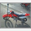leopard print seat, "custom" black metallic star graphics, and iron cross exhaust, 5.0 Racing triple tree, throtle, and bars.