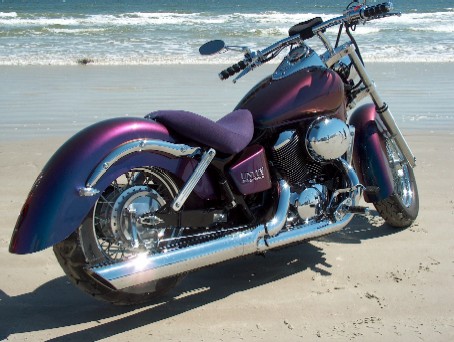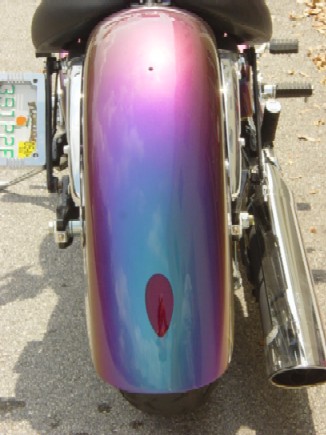 Chameleon Paint, Completely shaved, Vertical half moon tag, Flush mounted teardrop l.e.d., & lots of chorme stuff