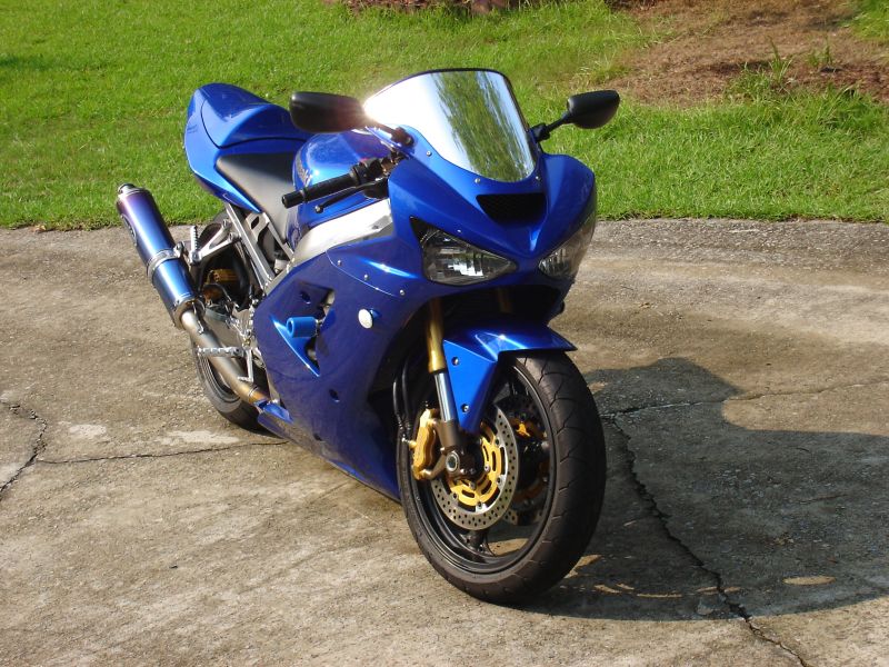 Stock candy blue paint. blue frame sliders, Sportech chrome windshield. fender eliminator kit. All lenses are flush and clear, tribal heel gaurds.