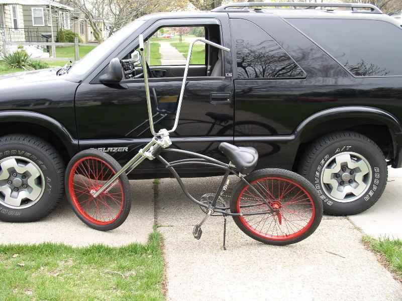 flat black, 45 degree rake, triple tree forks, the biggest fn ape hangers i could find.