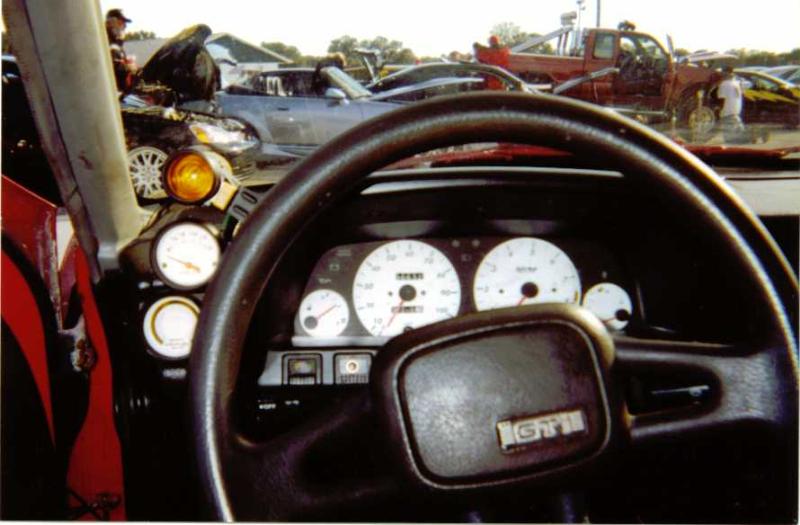 Birba Racing White Face Guages, Auto Meter fuel Pressure, Air/Fuel Ratio, Volts and Shift Light, Stock Racing Bucket Seats and Short Shifter with Carbon Fiber Shift Knob.