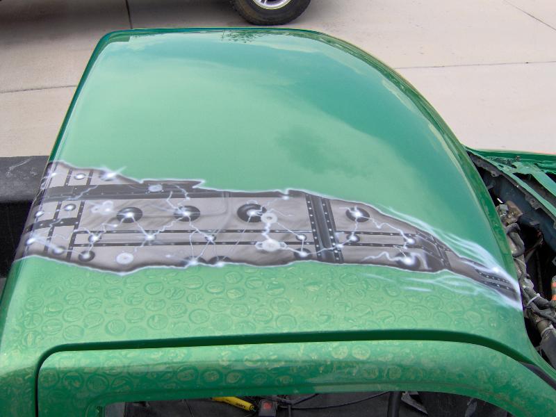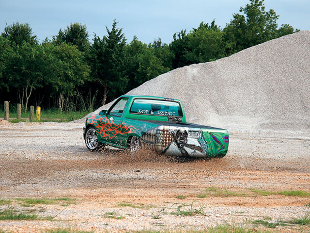 truck was a rolled total when i bought it 2inch bondo on roof cab sides bondoed with doors to make them straight 1-3 inches there the guy never tryed to fix the bed but looking at it why try? now it has a new cab 2 new doors new bed new fenders new hood new rad support new lights O did I say that every piece of metal was taken off the og body and trashed now to what is done to the new stuff. 3 inc body drop,4wd fenders,shaved firewall,doors, used 96 civic clutch master and yes it fits and works perfect,92 4runner front bumper and lights. sui doors ssd kit works really good .Well I cut the hell out of the firewall for the rhd thats done and ready for paint.I just started the sheet metal work in the bed. Fiber glass cowl hood unlimited products took 3 1/2 month to get. Then 2hrs to make the latch work so it would shut. Im not that happy with the hood. Smoothed cowl. GETTING PAINT NOW!!!