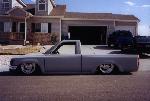 1/2" bags front 1/2" triple plays rear,2 inc drop spindles in front,4 link and custom bag mounts in rear,removed and home made trany x. York 210 compressor factory and custom brkts for york rh hand drive conversion with a rack and pinion fabricated to work!!!!!
