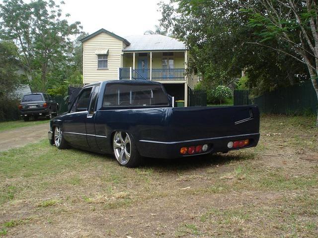 shaven everything, welded tray sides and tailgate, supra tail lights. harley mirrors, 03 2wd bumper and apron. US clear indicators, dimond backed head lights,
