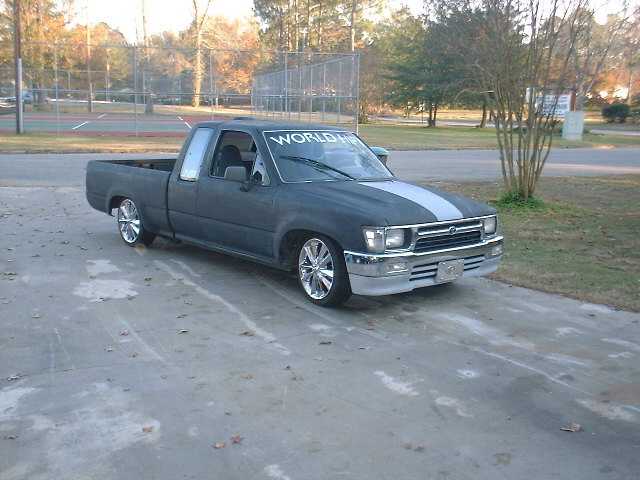 shaved bed ,euro tailights,shaved tailgate,molded hand made roll pan,shaved door handles molded in mustang hood scoop,4x4 front end,4x4 fenders,shaved cowl,shaved gas door, lots of primer balck and now changing to gray just for a change of scenery
