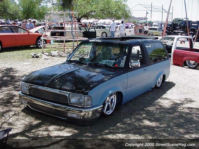 82 toyota front,93 blazer top,handbuilt quarter panels,fullsize chevy tailights,full sliding rag,etc.