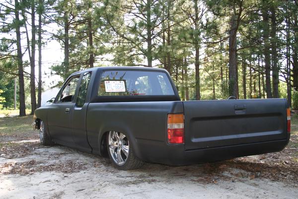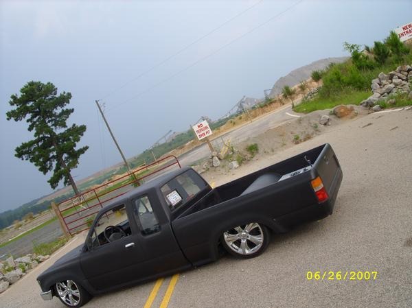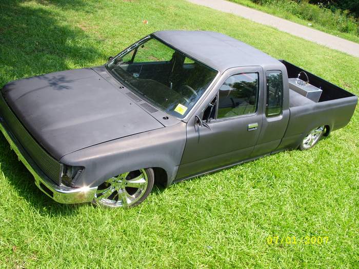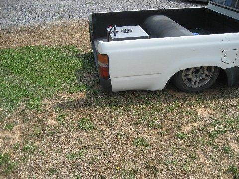 Nissan Xterra tails. Fiberglassed center console with place for 1 12 in the Ext Cab. Fiberglassed Dash with Mazda6 or 06 F150 Air Vents. B.A.D. Steering Wheel. Convert to Power locks. Suicide Doors, rebuilt 22RE turbo, retub for 22s =)