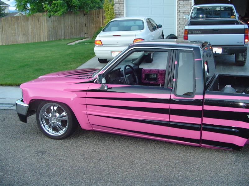 Shaved: Door handles, antenna, hood squirts, 3rd brake light, emblems, tail lights. Full skin combo, lexan window, 4Runner bumper and grille, chrome side mirrors, flush mount fiberglass tanneau however the hell you spell that... 3" body drop