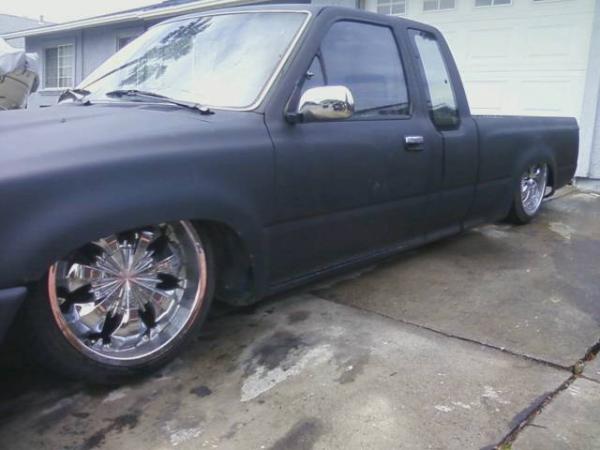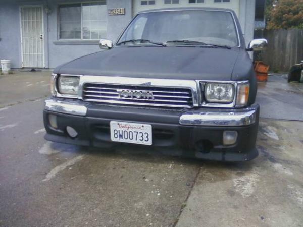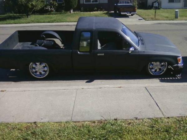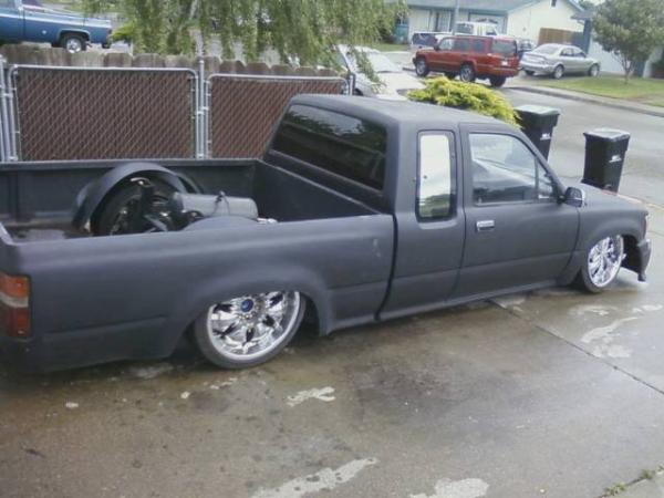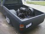 black primer, frenched lic plate, shaved gas fill door, shaved tail gate, skinned inside of bed, trailer fenders