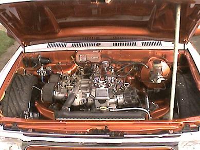 22R, Stage 3 cam, msd ignition, flowmaster exhaust, headers, port and polish, painted block, chrome valve cover, dual webber carburators ,k&n filters, and a cannon intake manifold