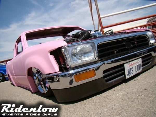3inch stock floor/2inch traditionial, firewall smoothed, tubed, roof chopped, bed shorttened, fully shaved, 4runner grill/headlights