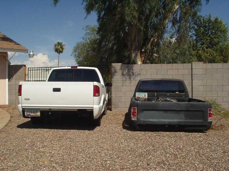 shaved tailgate handle, all bent and tweaked out bed from draggin, body dropped 4 1/2 inches, needs body work, needs new fenders