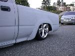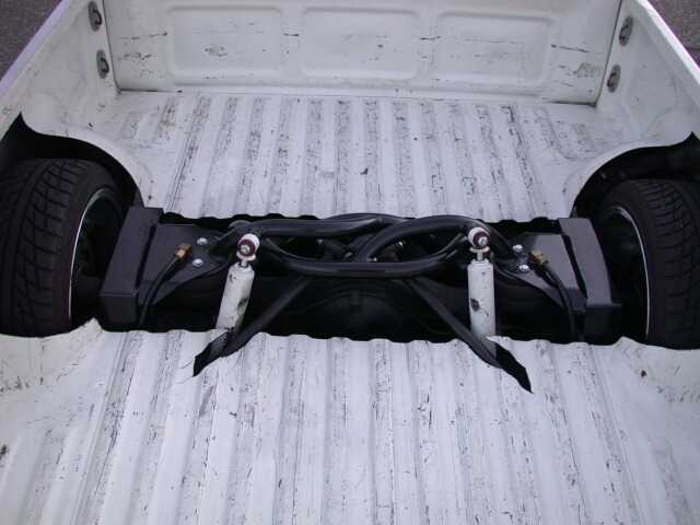 Reverse triangulated 4-link, Slam Specialities RS62 in the front, RS72 in the rear, 10 switch box, 7 gallon 5 port tank, Viair 450, Tranny X-member, Custom notch crossmember, 1/2" lines and valves. Custom brackets and crossmembers done by Sean and the crew of Suspension Dimension.