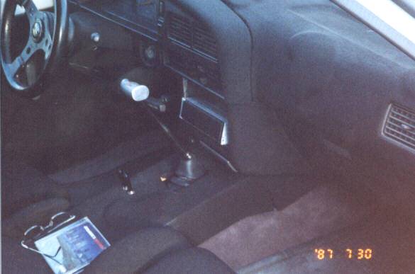 black tweed everything with raised foam design(cow spots)...fiero buckets...grant steering wheel...cow seatbelt pads for 10 extra hp...b&m shifter...