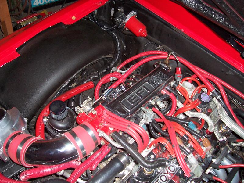 Painted Red; fuel filter, throttle body, distributor cap, and magnetic spark igniter.