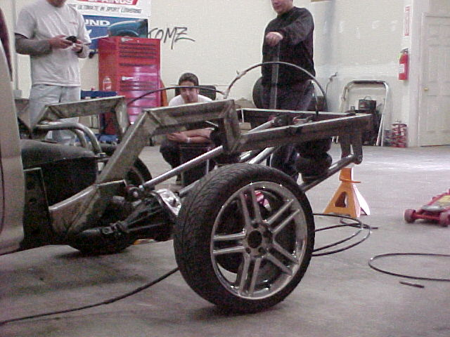 Full rear subframe, reverse cantilever 4-link, 10 switches. Done by Brand X Customz