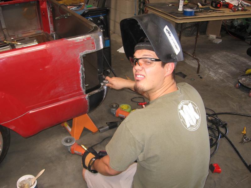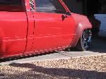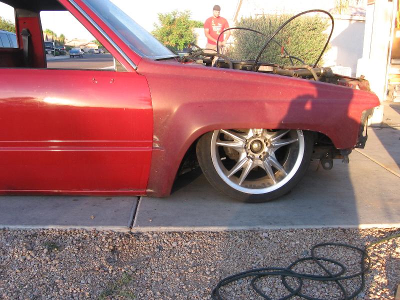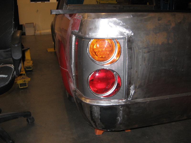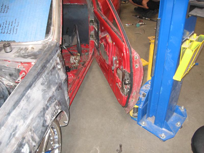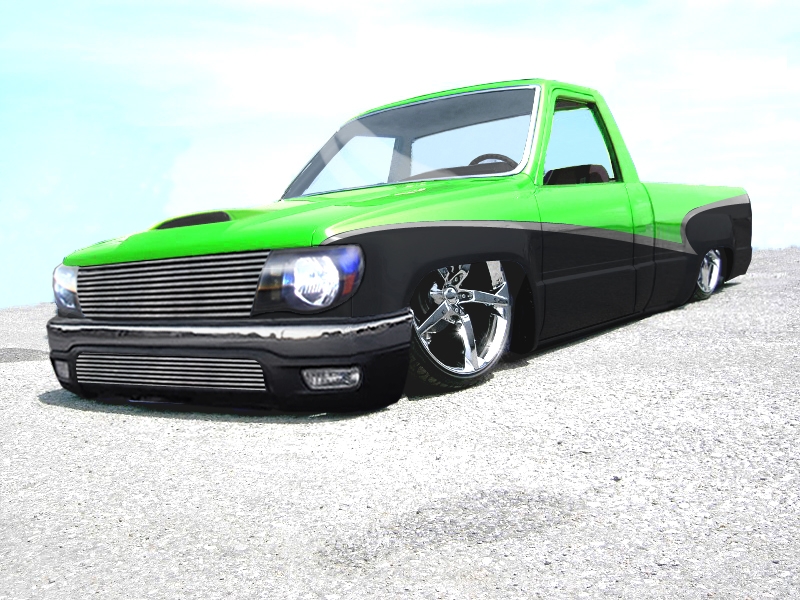 Stripped to bare metal: shaved doors, cowl, mirrors, gas door, grant skin, range rover taillights, suburu hood scoop, tacoma bumper, suicide doors.