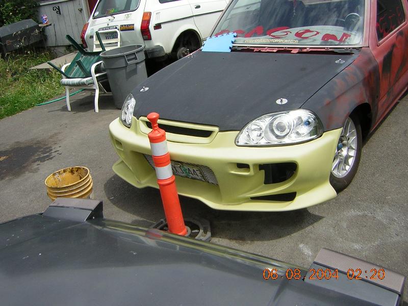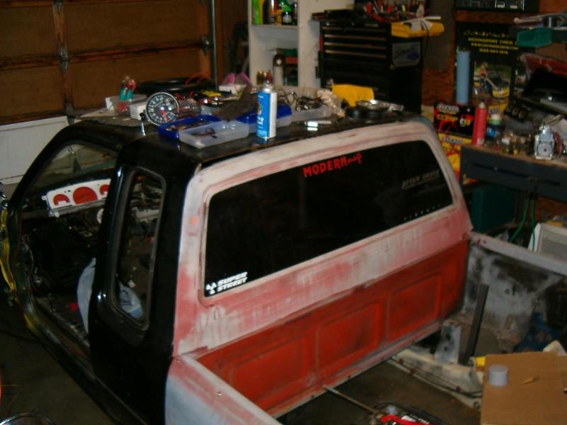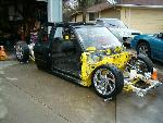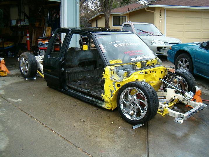 Most obviously, a full frontal 98 Honda Civic conversion. Euro tails and Blue Ion Dual Halo projector headlights. Shaved handles, tailgate and fuel door. Swapping everything from my 93' into the new cab and frame. Thanks Steve!