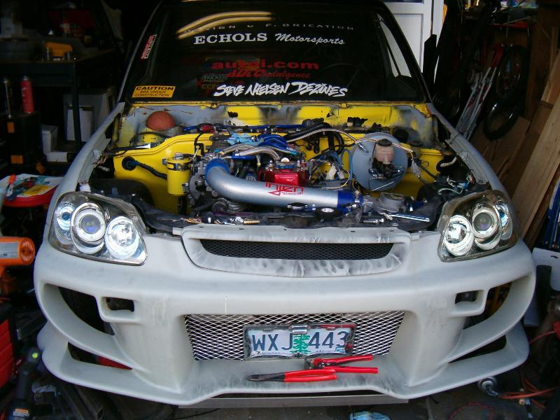 Well, it's coming along. I originally built the fenders to sit high enough I could use a stock Honda hood. Now Im BD'd 2.5"s. So, I'm gonna redo the entire frontend and front frame. I'm gonna redo the rearend some. I want to add 2 reverse bars with bags mounted on them, relocate the battery and do some tubular work.