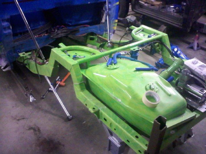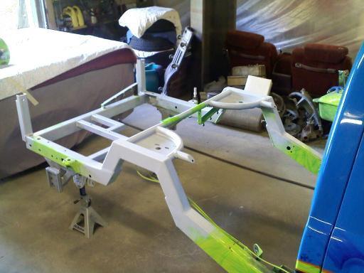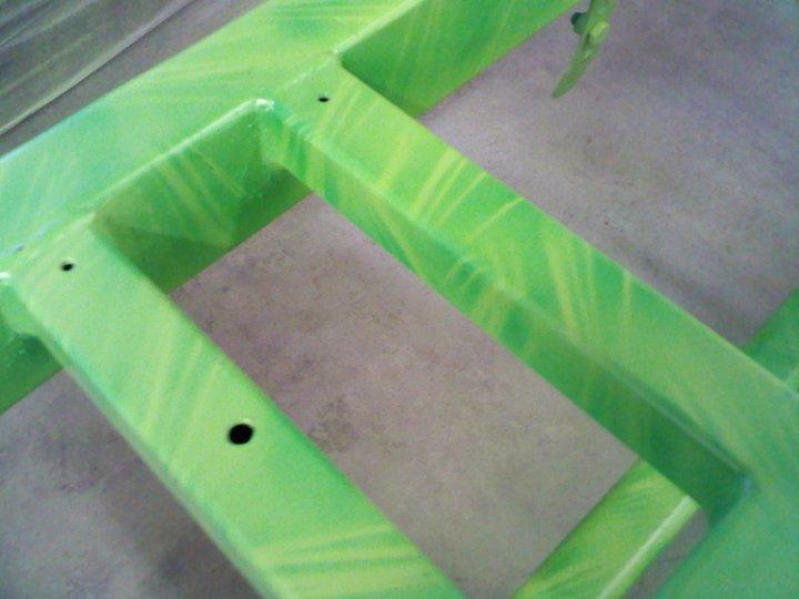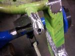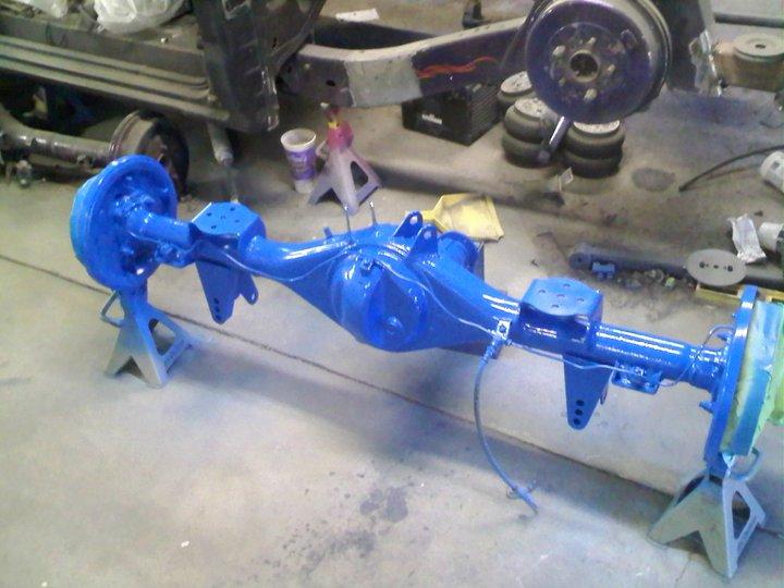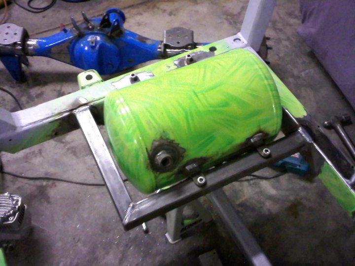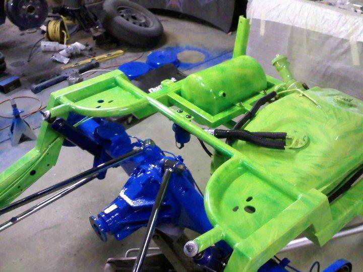 full air ride with chrome upper control arms, chrome 4-link, 1/4" SMC's with 3/8" line...Frame is fully painted and air brushed by Dustin as well