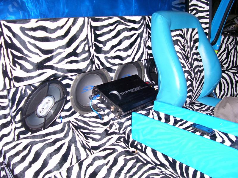 JVC receiver, with Infintity reference 6 1/2s in the doors and 6x9's in the bed box. Diamond audio 300w amp pushing two 10" alpine subs in bed box. All rewired and installed by me...